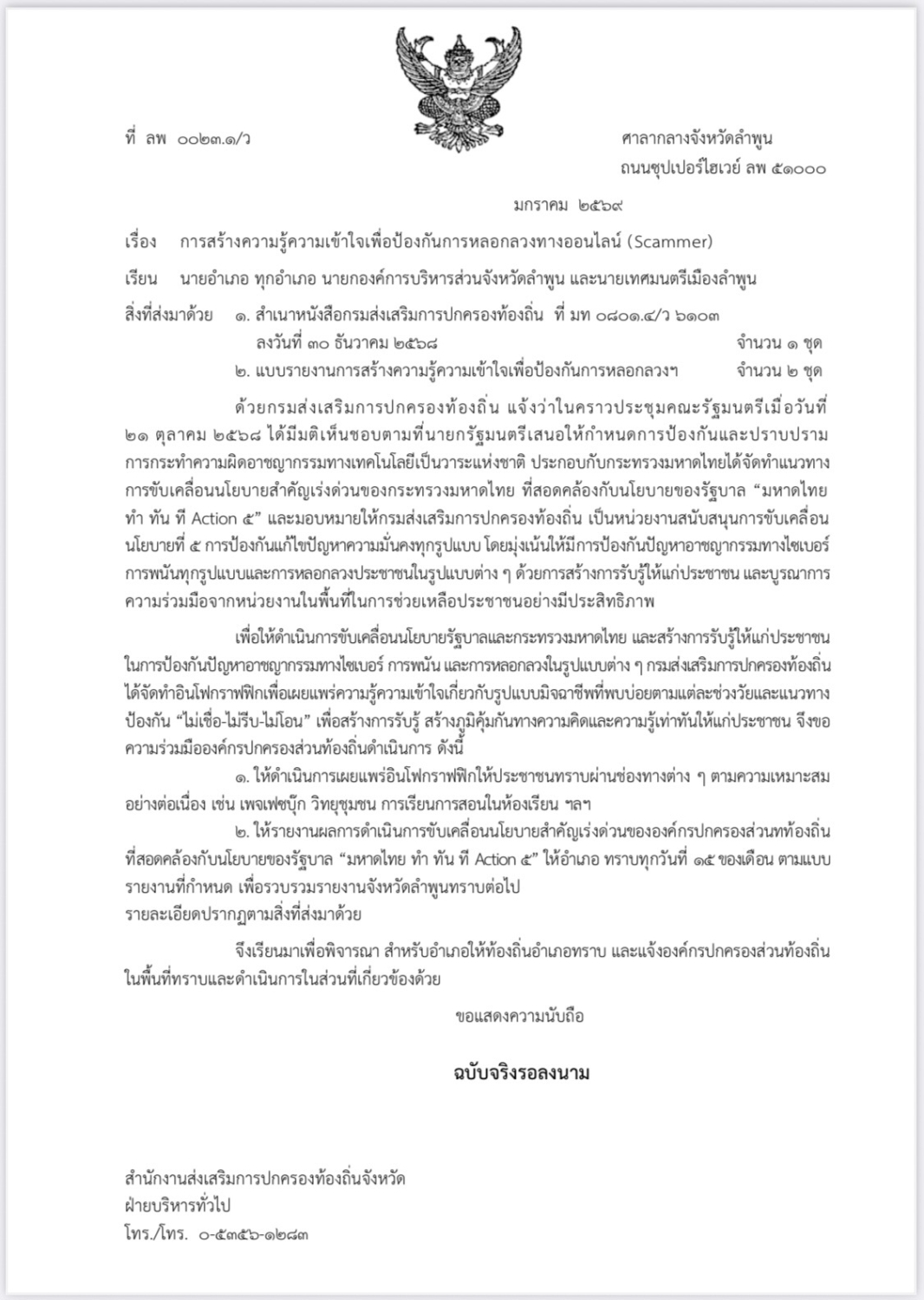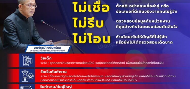 ข่าวประชาสัมพันธ์ 9 เม.ย. 2026 38 [เตือนภัย] อย่าตกเป็นเหยื่อมิจฉาชีพ! ด้วยคาถา “ไม่เชื่อ ไม่รีบ ไม่โอน”