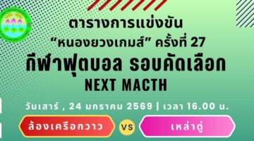 ข่าวประชาสัมพันธ์ 19 ม.ค. 2026 7 เทศบาลตำบลหนองยวง ขอเชิญชวนประชาชนทุกท่าน ร่วมแข่งขัน ร่วมชม ร่วมเชียร์ และร่วมให้กำลังใจแก่นักกีฬา ในการแข่งขันกีฬาเยาวชนและประชาชนตำบลหนองยวง ประจำปีงบประมาณ พ.ศ. 2569