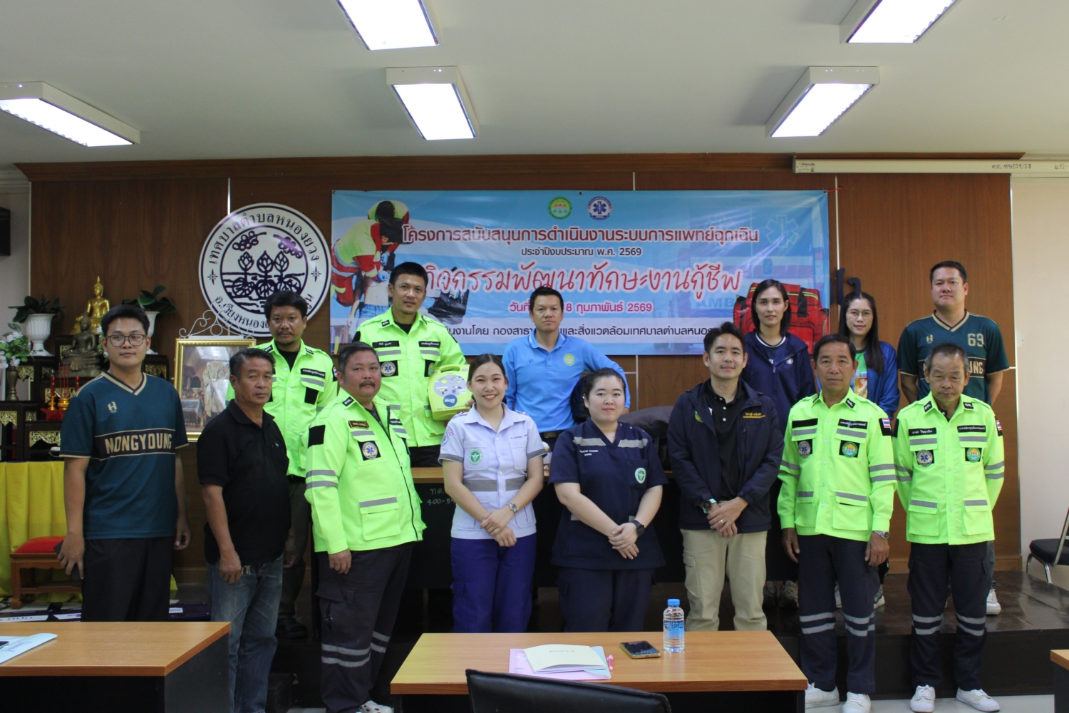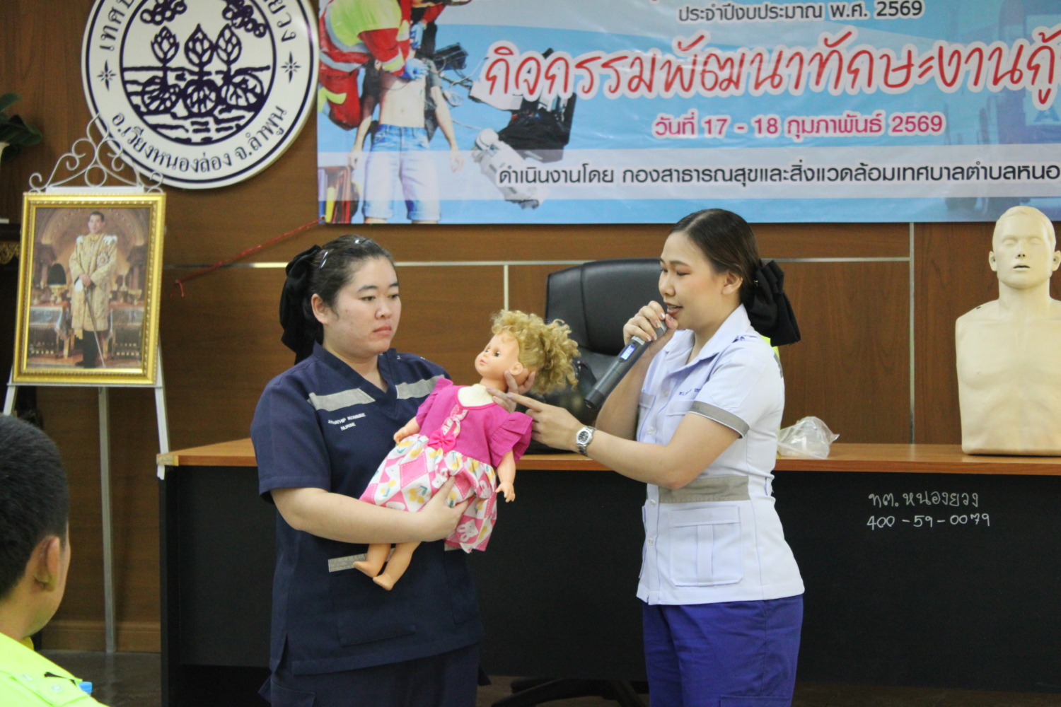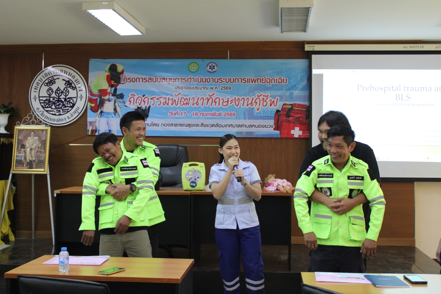 วันที่ 17 – 18 กุมภาพันธ์ 2569 : กองสาธารณสุขและสิ่งแวดล้อม เทศบาลตำบลหนองยวง จัดโครงการสนับสนุนการดำเนินงานระบบการแพทย์ฉุกเฉิน ประจำปีงบประมาณ 2569 เพื่อฝึกอบรมเชิงปฏิบัติการปฐมพยาบาลเบื้องต้นและการช่วยชีวิตพื้นฐาน ให้กับผู้ปฏิบัติงานด้านการแพทย์ฉุกเฉิน หน่วยปฏิบัติงานการแพทย์ฉุกเฉินเทศบาลตำบลหนองยวง โดยมี นายวัชราวุฒิ ฉางข้าวคำ นายกเทศมนตรีตำบลหนองยวง เป็นประธานเปิดโครงการฯ มีคณะผู้บริหารฯ และผู้อำนวยการกองเทศบาลตำบลหนองยวง เข้าร่วมพิธีเปิดโครงการฯ ณ ห้องประชุมเทศบาลตำบลหนองยวง