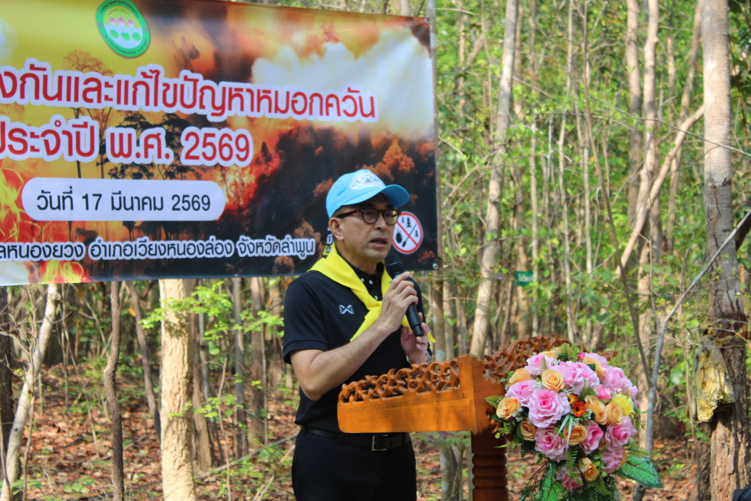 วัน อังคาร ที่ 17 มีนาคม 2569 เวลา 09.00 น. : นายปิยพงศ์ ชูวงศ์ ผู้ว่าราชการจังหวัดลำพูน เป็นประธานเปิดโครงการป้องกันและแก้ไขปัญหาหมอกควัน ประจำปีงบประมาณ พ.ศ. 2569 และมีนายเมธเมธา พัคค์สุนทร นายอำเภอเวียงหนองล่อง เป็นผู้กล่าวรายงานฯ โดยเทศบาลตำบลหนองยวง นำโดย นายวัชราวุฒิ ฉางข้าวคำ นายกเทศมนตรีตำบลหนองยวง พร้อมด้วย คณะผู้บริหารฯ สมาชิกสภาเทศบาลฯ และพนักงานเทศบาลตำบลหนองยวง ได้เข้าร่วมกิจกรรมฯ โดยพร้อมเพรียงกัน ณ ป่าชุมชน หมู่ที่ 4 บ้านหัวห้วย ตำบลหนองยวง อำเภอเวียงหนองล่อง จังหวัดลำพูน เพื่อจัดทำกิจกรรมพัฒนาแนวกันไฟ