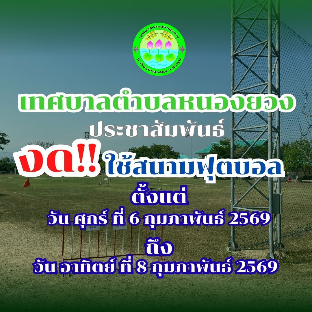 เนื่องจาก เทศบาลตำบลหนองยวง จะดำเนินการทำนุบำรุงและปรับปรุงสนามฟุตบอล เพื่อเตรียมความพร้อมสำหรับการจัดการแข่งขันกีฬาเยาวชนและประชาชน ตำบลหนองยวง ประจำปีงบประมาณ พ.ศ. 2569 “หนองยวงเกมส์” ครั้งที่ 27