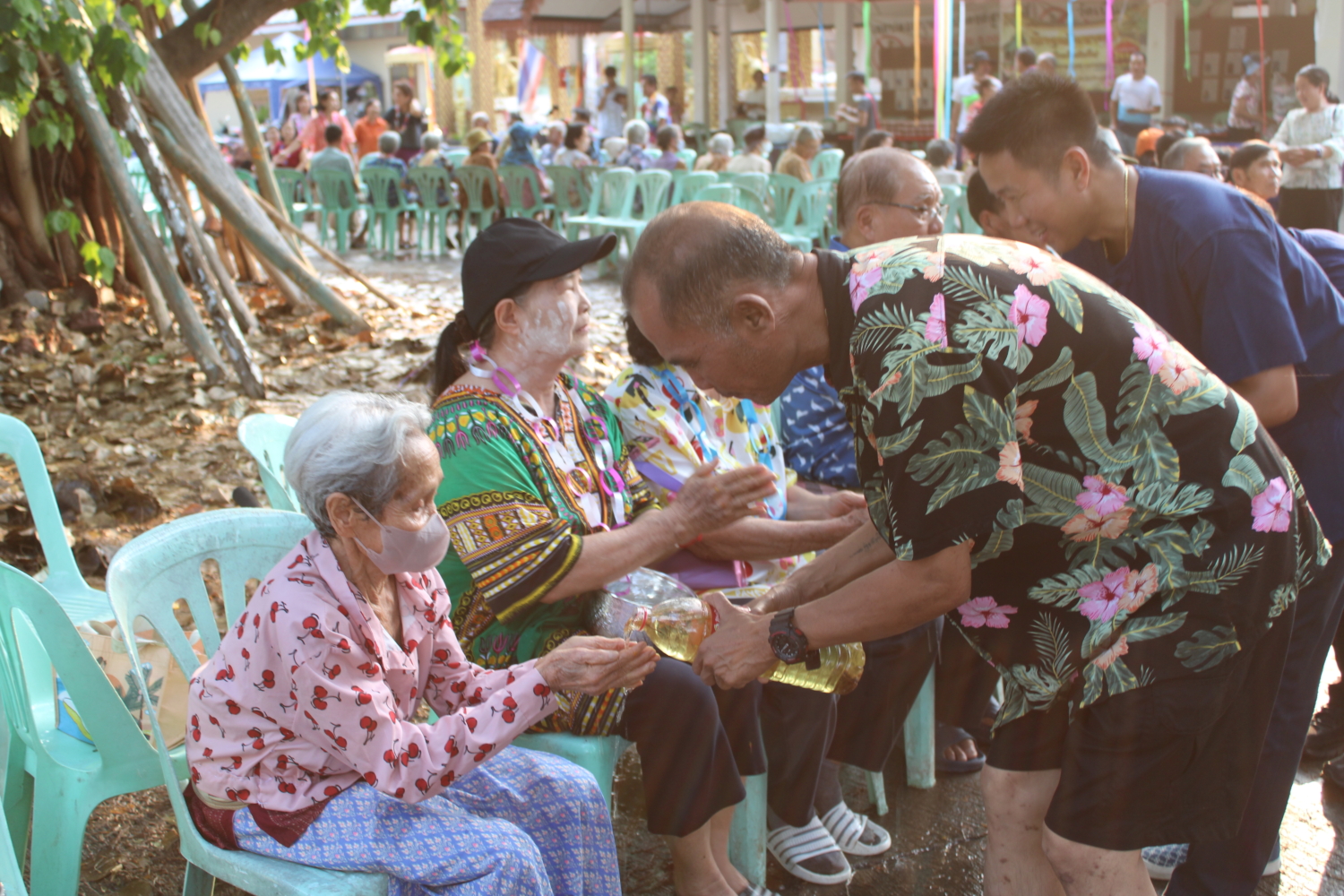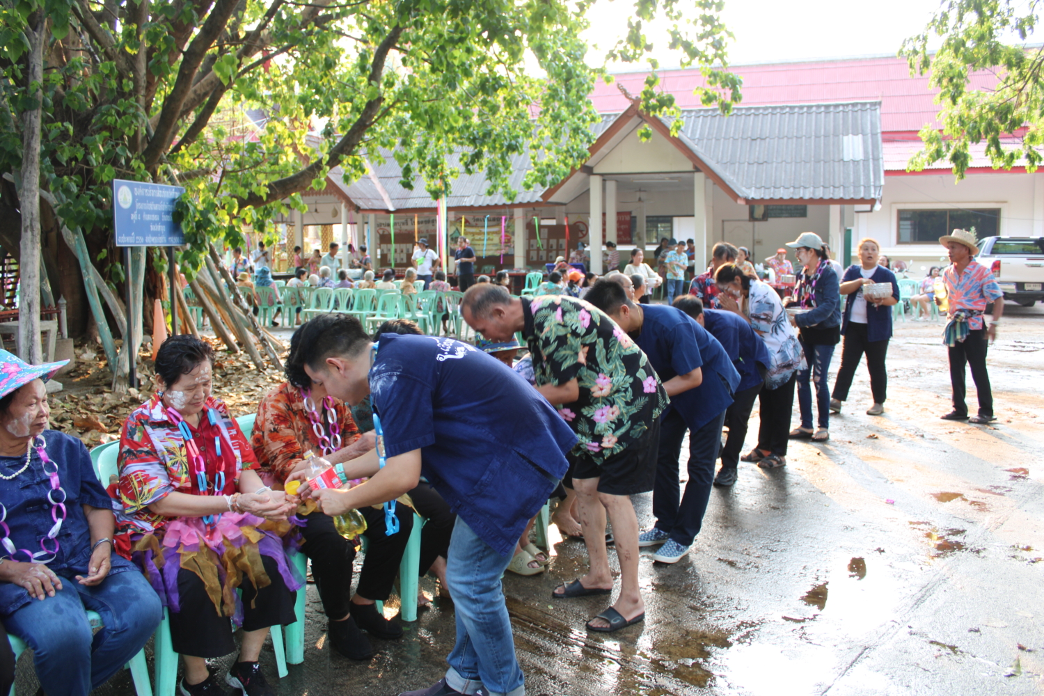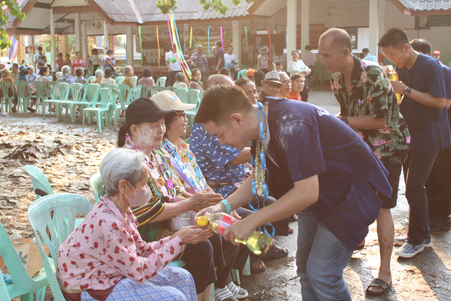 วัน พฤหัสบดี ที่ 16 เมษายน 2569 เวลา 15.00 น. : นายวัชราวุฒิ ฉางข้าวคำ นายกเทศมนตรีตำบลหนองยวง พร้อมด้วย คณะผู้บริหารฯ สมาชิกสภาเทศบาลฯ และพนักงานเทศบาลตำบลหนองยวง ร่วมพิธีรดน้ำดำหัวผู้สูงอายุ เนื่องในโอกาสวันสงกรานต์ ประจำปี 2569 ณ วัดเหล่าดู่ หมู่ที่ 1 และบ้านห้วยปันจ๊อย หมู่ที่ 2 ตำบลหนองยวง อำเภอเวียงหนองล่อง จังหวัดลำพูน เพื่อแสดงความเคารพและขอพรจากผู้สูงอายุ สืบสานประเพณีอันดีงามของไทยให้คงอยู่สืบไป