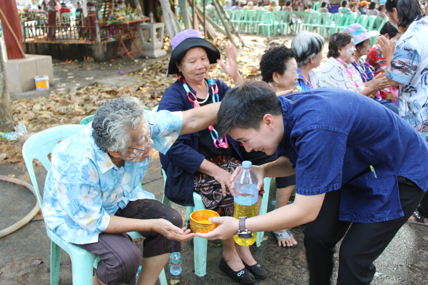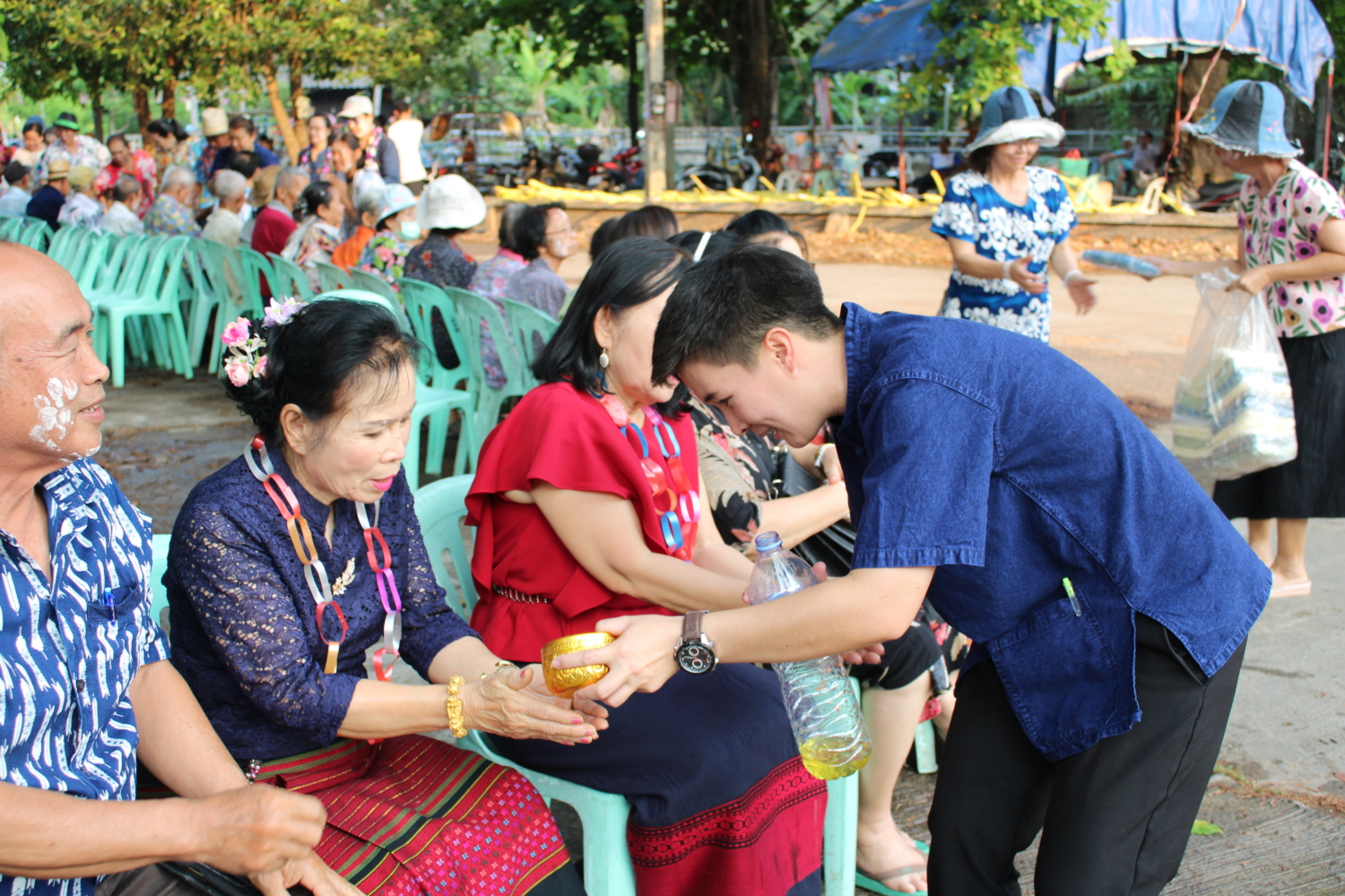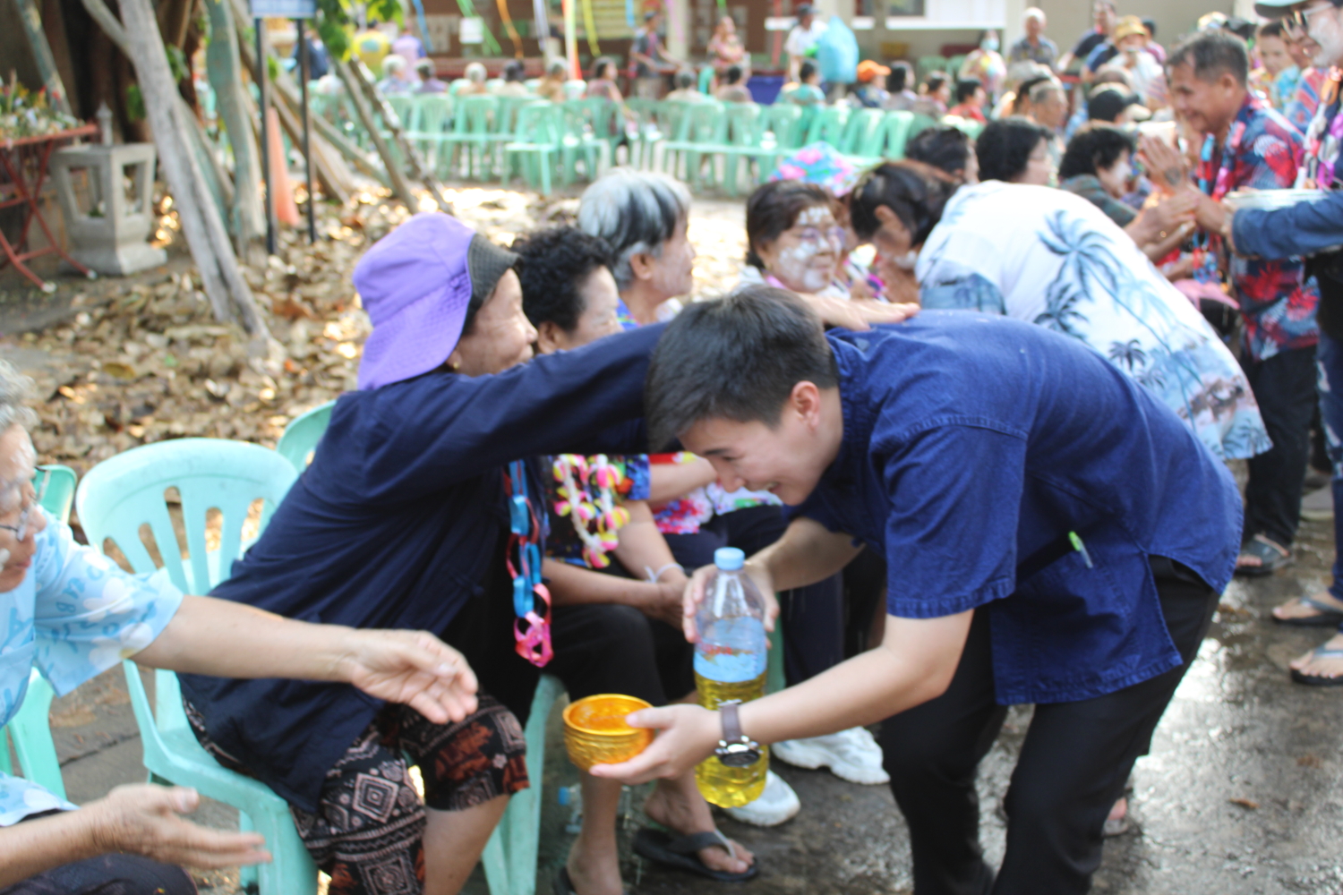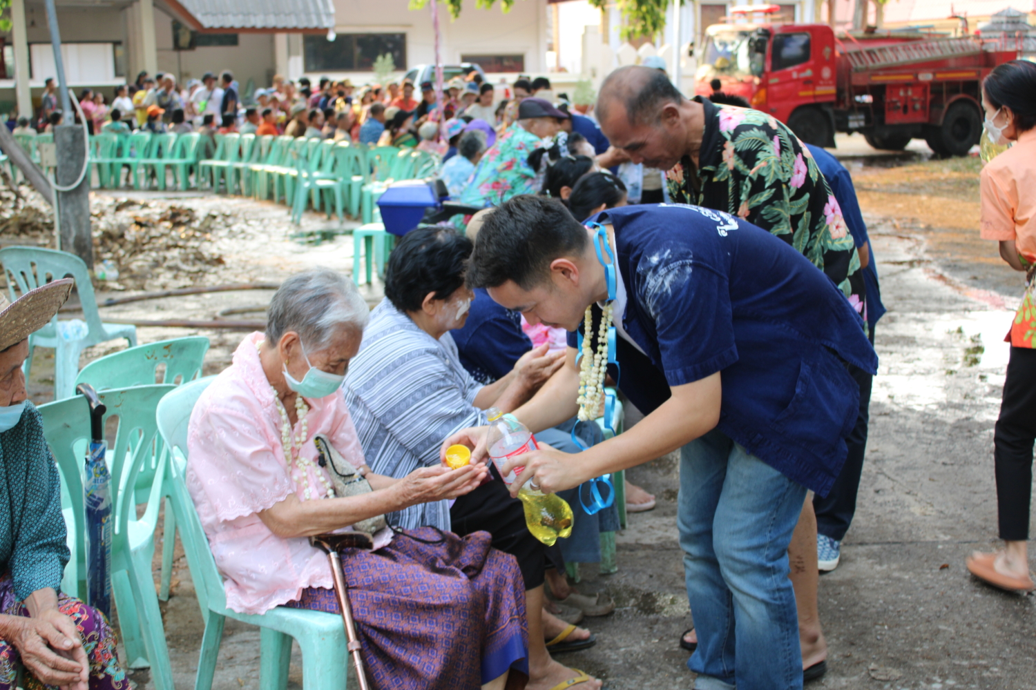 วัน พฤหัสบดี ที่ 16 เมษายน 2569 เวลา 15.00 น. : นายวัชราวุฒิ ฉางข้าวคำ นายกเทศมนตรีตำบลหนองยวง พร้อมด้วย คณะผู้บริหารฯ สมาชิกสภาเทศบาลฯ และพนักงานเทศบาลตำบลหนองยวง ร่วมพิธีรดน้ำดำหัวผู้สูงอายุ เนื่องในโอกาสวันสงกรานต์ ประจำปี 2569 ณ วัดเหล่าดู่ หมู่ที่ 1 และบ้านห้วยปันจ๊อย หมู่ที่ 2 ตำบลหนองยวง อำเภอเวียงหนองล่อง จังหวัดลำพูน เพื่อแสดงความเคารพและขอพรจากผู้สูงอายุ สืบสานประเพณีอันดีงามของไทยให้คงอยู่สืบไป