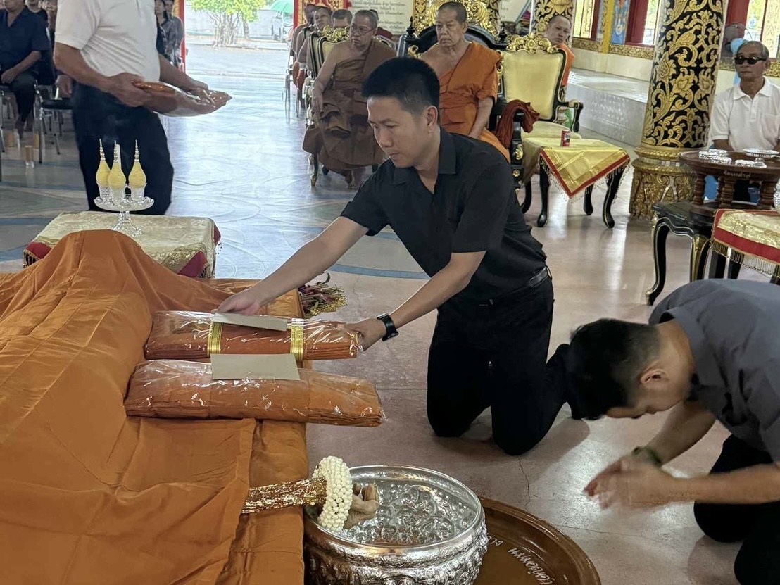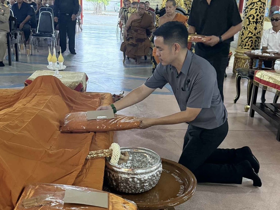 วัน จันทร์ที่ 17 พฤศจิกายน 2568 เวลา 15.00 น. : นายวัชราวุฒิ ฉางข้าวคำ นายกเทศมนตรีตำบลหนองยวง พร้อมด้วย นายศิริวัฒน์ ศรีเพชร รองนายกเทศมนตรีตำบลหนองยวง และนายปภาวิน ปัญญาเทพ ผู้อำนวยการกองช่าง รักษาราชการแทนปลัดเทศบาลตำบลหนองยวง ร่วมพิธีรดน้ำศพ สรีระร่างของพระอธิการเฉลิม ฐิตธมฺโม อดีตเจ้าอาวาสวัดเหล่าดู่ โดย นายเอนก ทาสัก นายอำเภอเวียงหนองล่อง เป็นประธานในพิธีฯ ณ วัดเหล่าดู่ หมู่ที่ 1 ตำบลหนองยวง อำเภอเวียงหนองล่อง จังหวัดลำพูน