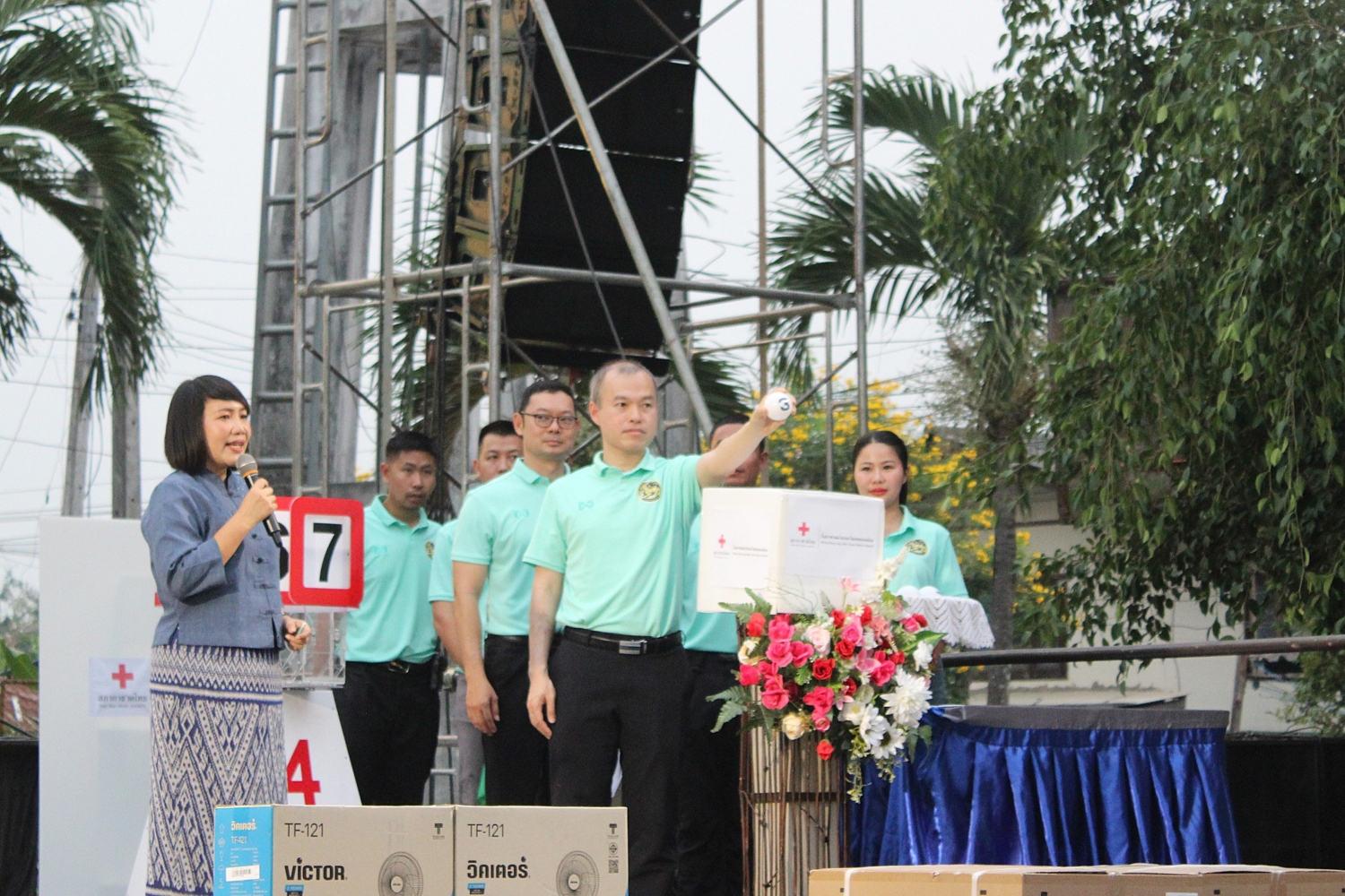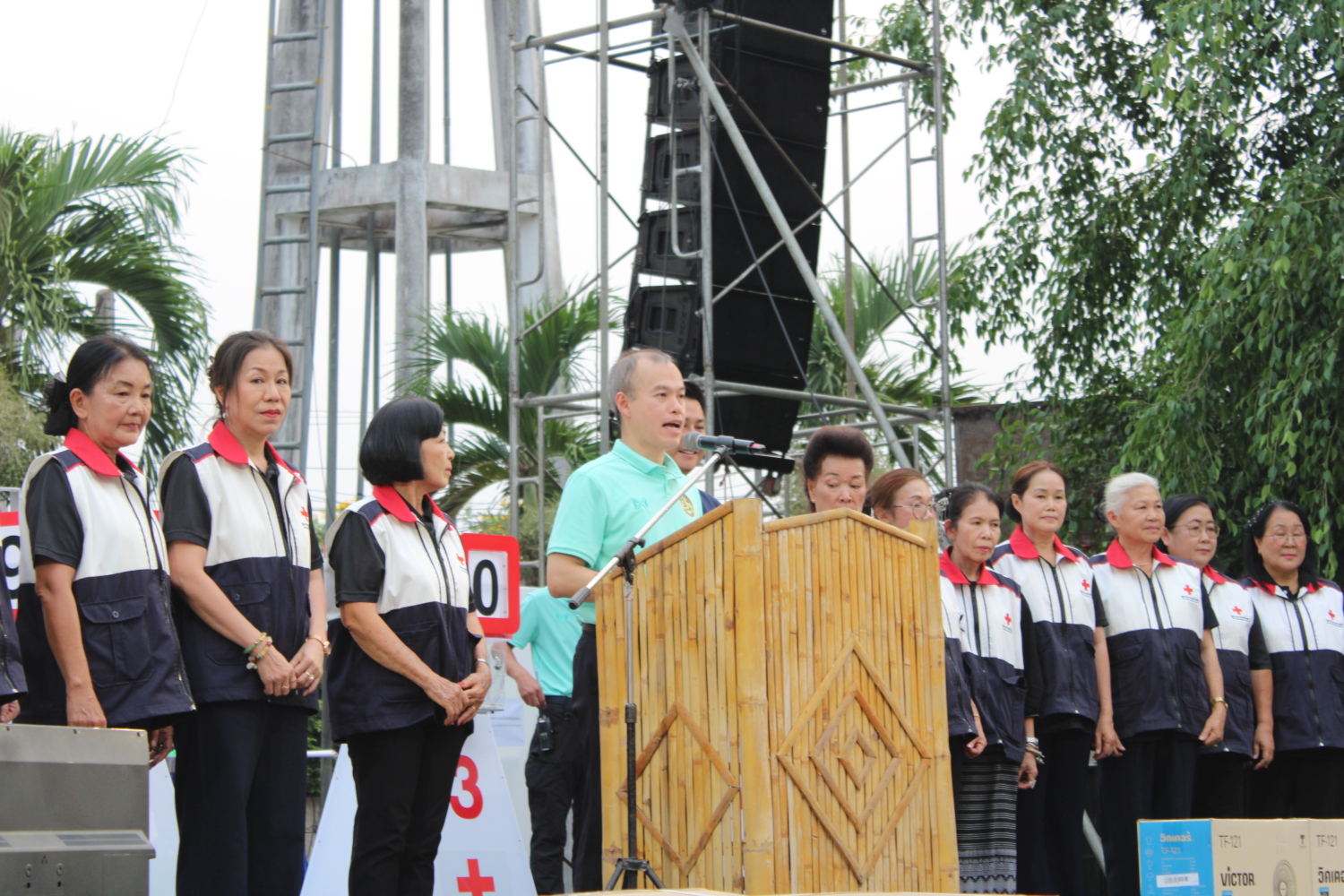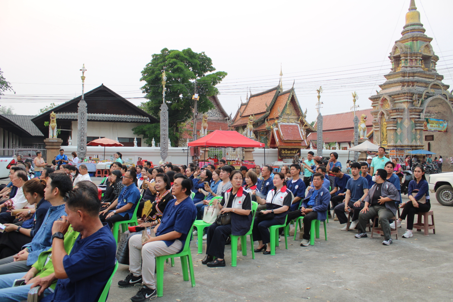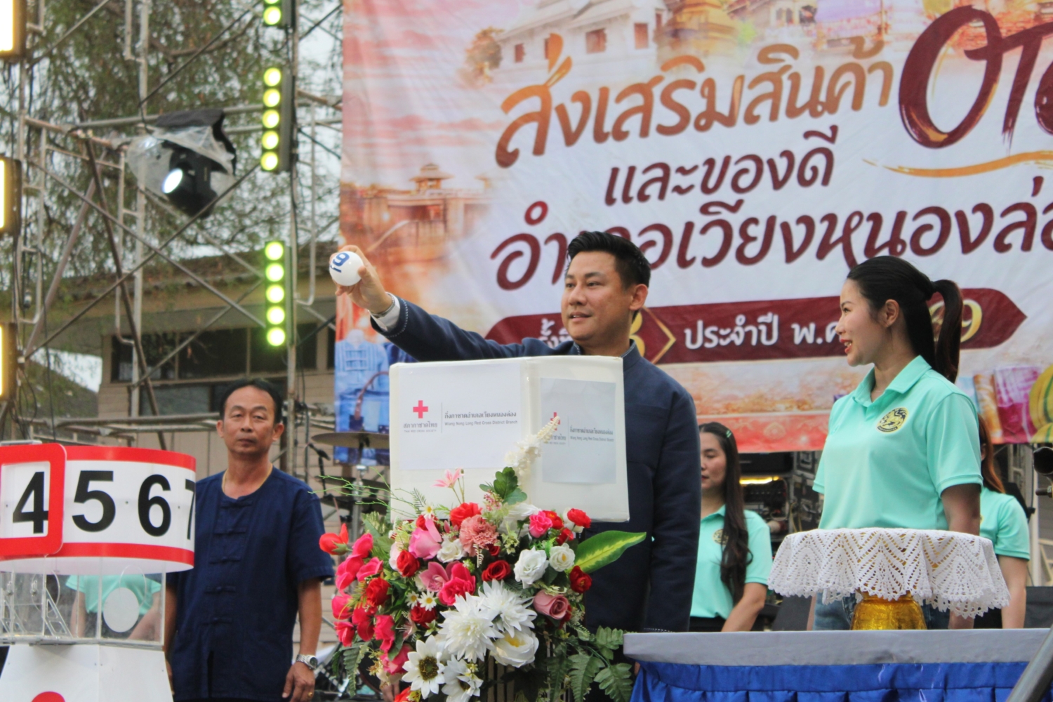 ทั้งนี้ มีนายชัชพีร์ วรรณาพิรัชย์ สมาชิกสภาผู้แทนราษฎรลำพูน เขต 2 นายสุวรรณ หอยแก้ว สมาชิกสภาองค์การบริหารส่วนจังหวัดลำพูน เขต 2 ผกก.สภ.เวียงหนองล่อง นายกสมาคมการค้าผู้ประกอบการผลไม้ไทยภาคเหนือ คณะผู้บริหาร สมาชิกสภา ทั้ง 3 ตำบล ปลัดอำเภอ หัวหน้าส่วนราชการ พนักงานส่วนท้องถิ่น กำนัน ผู้ใหญ่บ้าน สมาชิกเหล่ากาชาดอำเภอเวียงหนองล่อง และประชาชนในพื้นที่อำเภอเวียงหนองล่อง เข้าร่วมพิธี ฯ ดังกล่าว