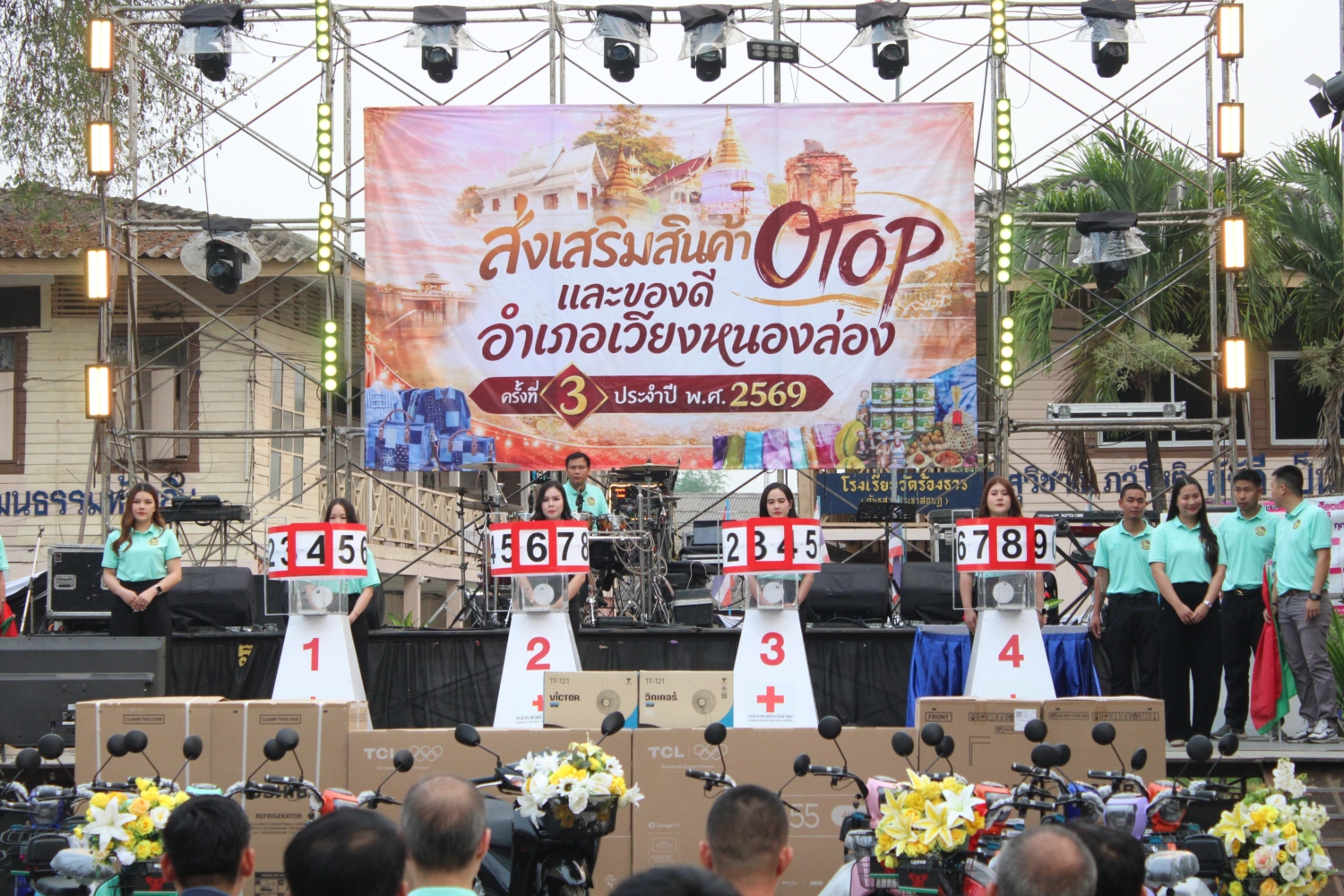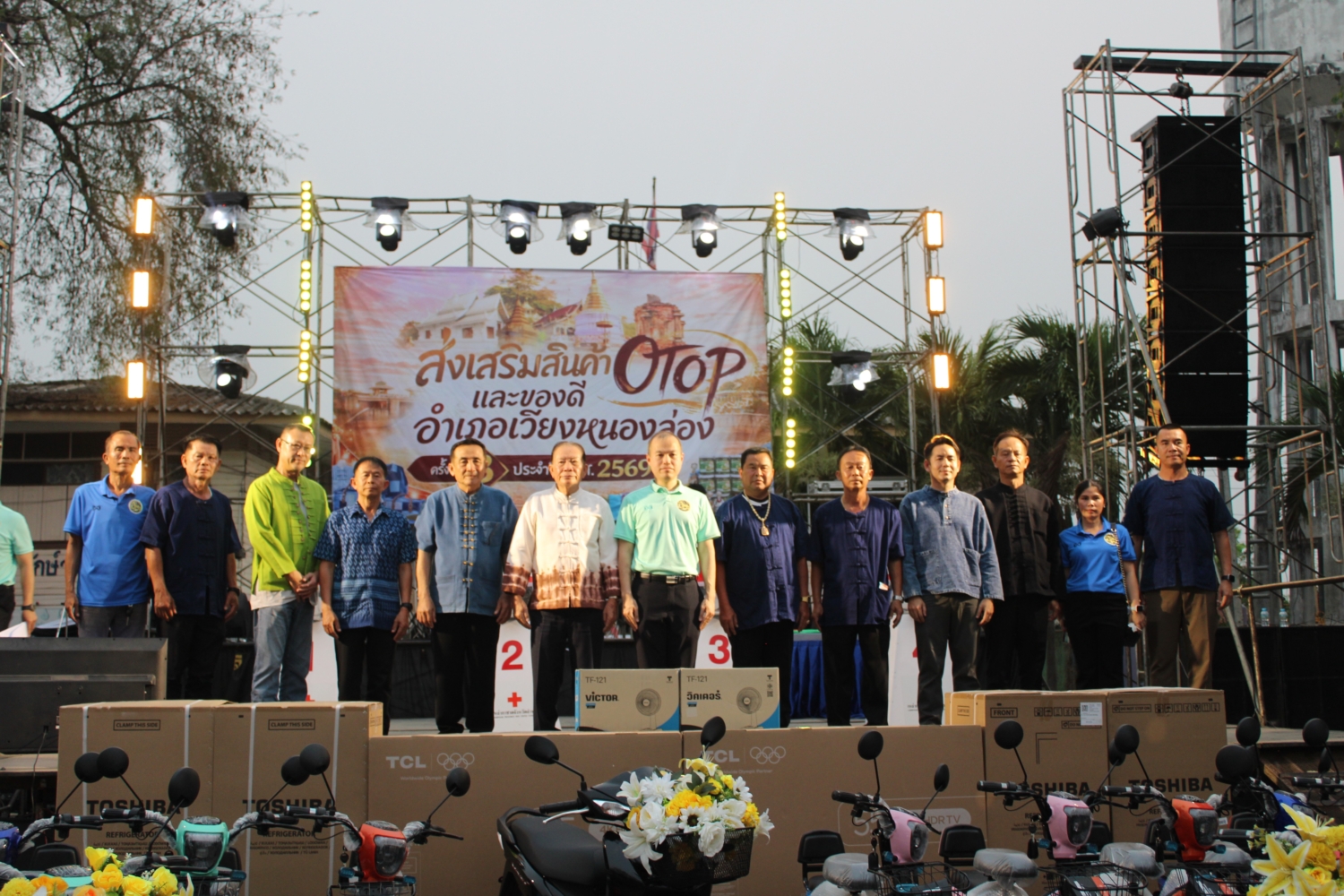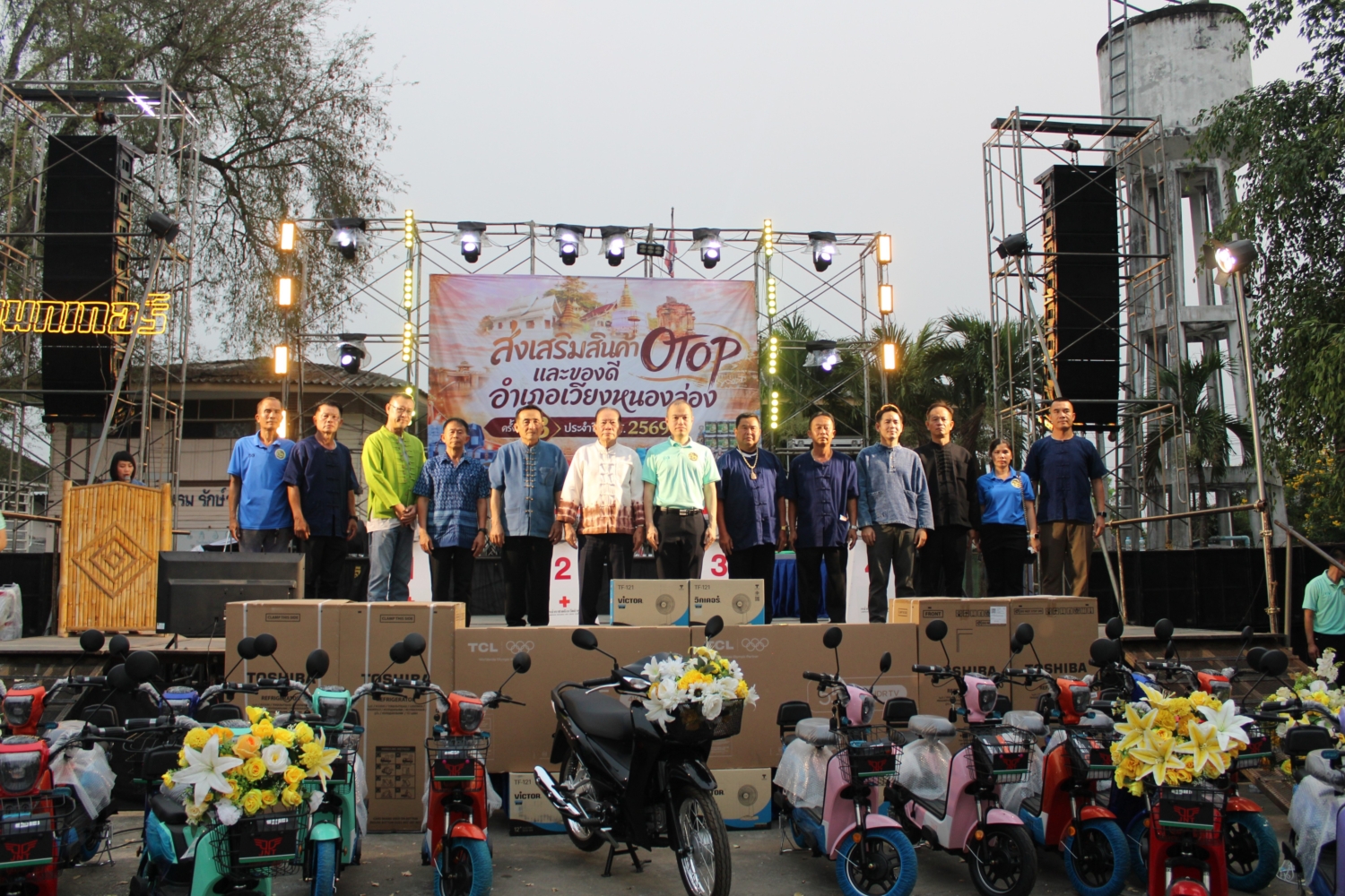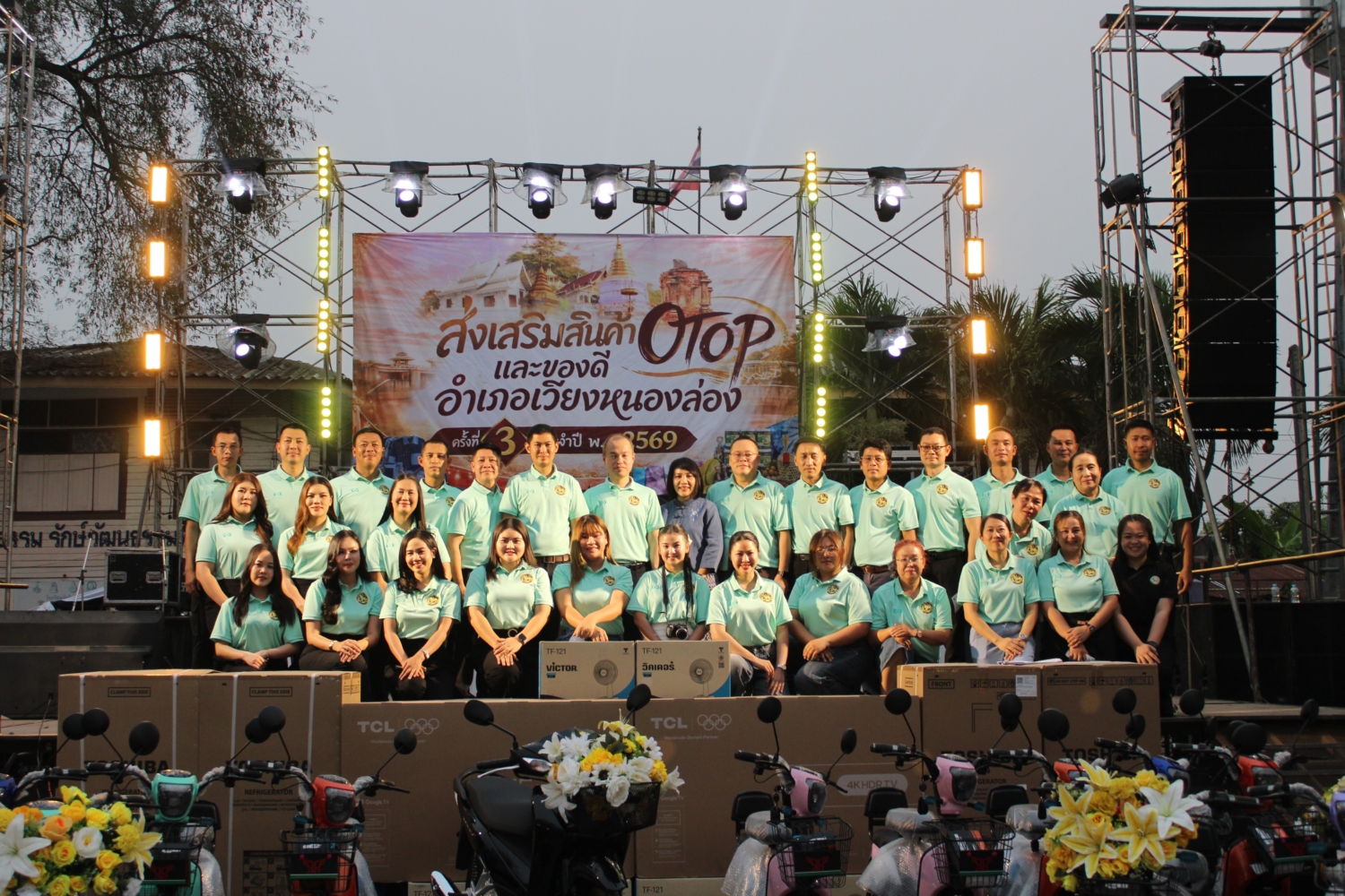 วัน ศุกร์ ที่ 3 เมษายน 2569 เวลา 18.00 น. : เทศบาลตำบลหนองยวง นำโดย นายวัชราวุฒิ ฉางข้าวคำ นายกเทศมนตรีตำบลหนองยวง พร้อมด้วย คณะผู้บริหารฯ และพนักงานเทศบาลตำบลหนองยวง เข้าร่วมพิธีเปิดงาน “ส่งเสริมสินค้า OTOP และของดีอำเภอเวียงหนองล่อง” ครั้งที่ 3 ประจำปี พ.ศ. 2569 โดยมี นายเมธเมธา พัคค์สุนทร นายอำเภอเวียงหนองล่อง เป็นประธานในพิธีฯ ณ ลานกิจกรรมบ้านร้องธาร – ท่าลี่ หมู่ที่ 3 ตำบลวังผาง อำเภอเวียงหนองล่อง จังหวัดลำพูน