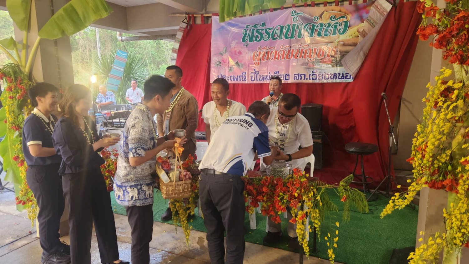 วัน อังคาร ที่ 21 เมษายน 2569 เวลา 16.00 น. : เทศบาลตำบลหนองยวง นำโดย นายศิริวัฒน์ ศรีเพชร รองนายกเทศมนตรีตำบลหนองยวง พร้อมด้วย คณะผู้บริหารฯ และนางสาวพัทธวรรณ พรพินิตโภคิน หัวหน้าสำนักปลัดเทศบาลตำบลหนองยวง เข้าร่วมพิธีรดน้ำดำหัวผู้กำกับการสถานีตำรวจภูธรเวียงหนองล่อง เพื่อให้เกิดความเป็นมงคล และเพื่อเป็นการสืบสานประเพณีไทย ณ สถานีตำรวจภูธรเวียงหนองล่อง อำเภอเวียงหนองล่อง จังหวัดลำพูน