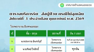 ข่าวประชาสัมพันธ์ เทศบาลตำบลหนองยวง ประชาสัมพันธ์ ตารางบริการรับ – ส่ง ผู้ป่วย กรณีไม่ฉุกเฉิน สัปดาห์ที่ 2 ประจำเดือน กุมภาพันธ์ พ.ศ. 2569 9 ก.พ. 2026 80 views edituser เทศบาลตำบลหนองยวง ประชาสัมพันธ์ ตารางบริการรับ - ส่ง ผู้ป่วย กรณีไม่ฉุ… ดูเพิ่มเติม