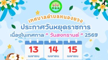 ข่าวประชาสัมพันธ์ ประกาศวันหยุดราชการ เนื่องในเทศกาลสงกรานต์ 9 เม.ย. 2026 44 views edituser ประกาศวันหยุดราชการ เนื่องในเทศกาลสงกรานต์ เทศบาลตำบลหนองยวง ขอแจ้งหยุ… ดูเพิ่มเติม